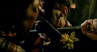 Кроме того, присутствуют несколько сцен, в которых действия различных персонажей в разных местах дома связаны. Это и ключевая сцена с всё ускоряющимися движениями (думаю, посмотрев фильм Вы поймёте, какую сцену я имею ввиду :-) ), и сцена с определением скрипящей пружины... Да и цветовые решения в разных местах связаны, например кроваво-красное платье на любовнице мясника в начале фильма и цвет клубка, приведшего старушку ночью на лестницу.