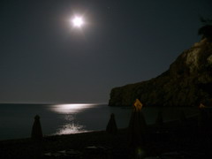 Помирил нас с отелем и вообще с жизнью :-), ночной пляж, на который мы явились часов в 11 вечера, и прогулявшись к горе и обратно устроились на лежаках у воды. На всём пляже, кроме нас не было ни одного человека, луна немного освещала гору, выступавшую из мрака справа, на море бежала лунная дорожка, а наверху раскинулся небесный ковёр тысячезвёздный. С моря дул свежий ветер и вообще, жизнь была прекрасна и удивительна. После шумных отдыхающих, леса лежаков и зонтиков, массовых поп-плясок, гигалитров коктейлей :-) - на этом ночном пляже мы просто заново родились :-)